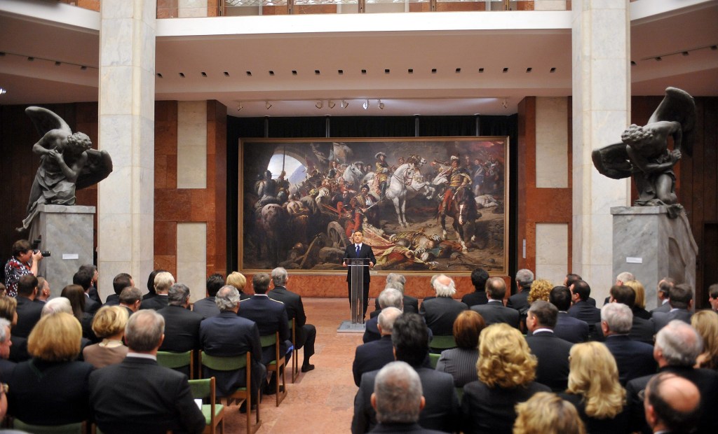 On 2 January 2012, Viktor Orbán, the Hungarian Prime Minister, opened a temporary exhibition at the Hungarian National Gallery (Magyar Nemzeti Galéria) entitled Heroes, Kings, and Saints: Images and Documents from the History of Hungary (Plate1). A re-arrangement of some of the great patriotic works of nineteenth-century Hungarian history painting, this show at first sight appeared uncontroversial despite the government directive that had brought it into being. This was not, however, just a rehang and the paintings were no longer to be understood simply as pinnacles in the history of Hungarian art. Now art was political illustration, and the visitor’s gaze was directed away from the artistic achievement and towards the paintings’ subject matter as a form of historical testament. At the very heart of these paintings was a narrative of national struggle; a political idea the Orbán government had used to win support. Hungary, so long a part of the Austrian Habsburg Empire, had endured many pains in its fight to exist as an independent nation. Like every nation in this part of Europe it had found its territory challenged by larger and more powerful nations, particularly Austria and the other German-speaking territories, Russia and Turkey. Each at some point imposed its will on this country. Its golden age of nation building began in the aftermath of its failed revolution of 1848 and culminated in the millennial national celebrations of 1896. This moment however was short-lived. On losing the First World War, Austria-Hungary was dissolved with the Treaty of Trianon of 1920, leaving Hungary at last an independent nation-state but reduced in size by two thirds. Its neighbours benefited as a result: Romania was extended, Czechoslovakia invented, and the northern Balkans gained independence. Like Austria, Hungary now found itself a small, disempowered nation. For nationalists this would forever be resented, but every country in this part of Europe could claim these kinds of injustice.