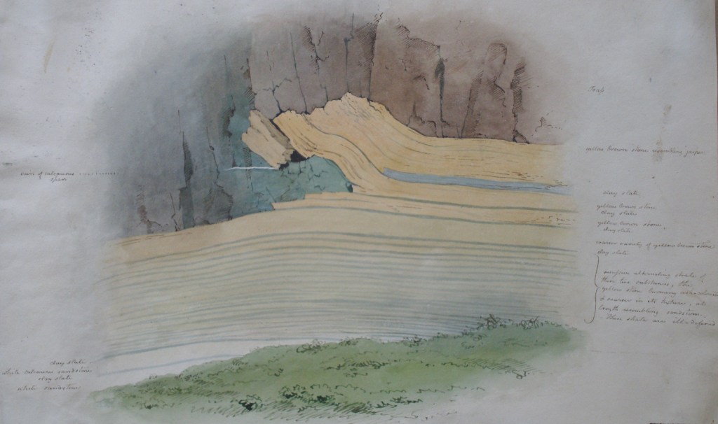 Both Greenough and Fitton were early associates of this Oxford circle and Fitton in particular was considerably impressed by the contribution it was making. The subject was so new, however, that respect and information flowed both ways; Oxford was finding its geological feet too. In May 1813, for example, Kidd and Buckland sat up till the early hours discussing two lectures written by Greenough.[33] The nature of these lectures is probably indicated by Greenough’s draft lecture notes on strata which still survive. These reveal Greenough’s awareness of Werner, Saussure and other earlier workers, and consider quite fundamental questions about the structure and field relations of rock masses.[34] Like those in Oxford with whom he corresponded, Greenough aspired to make a fundamental breakthrough concerning the structure of the Earth.